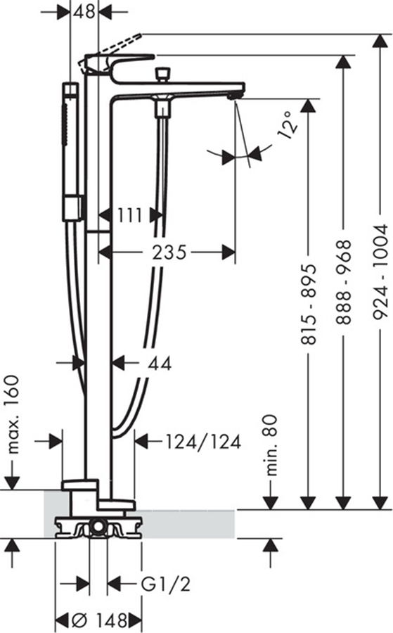 Змішувач Metropol для ванни підлоговий, Chrome (32532000)