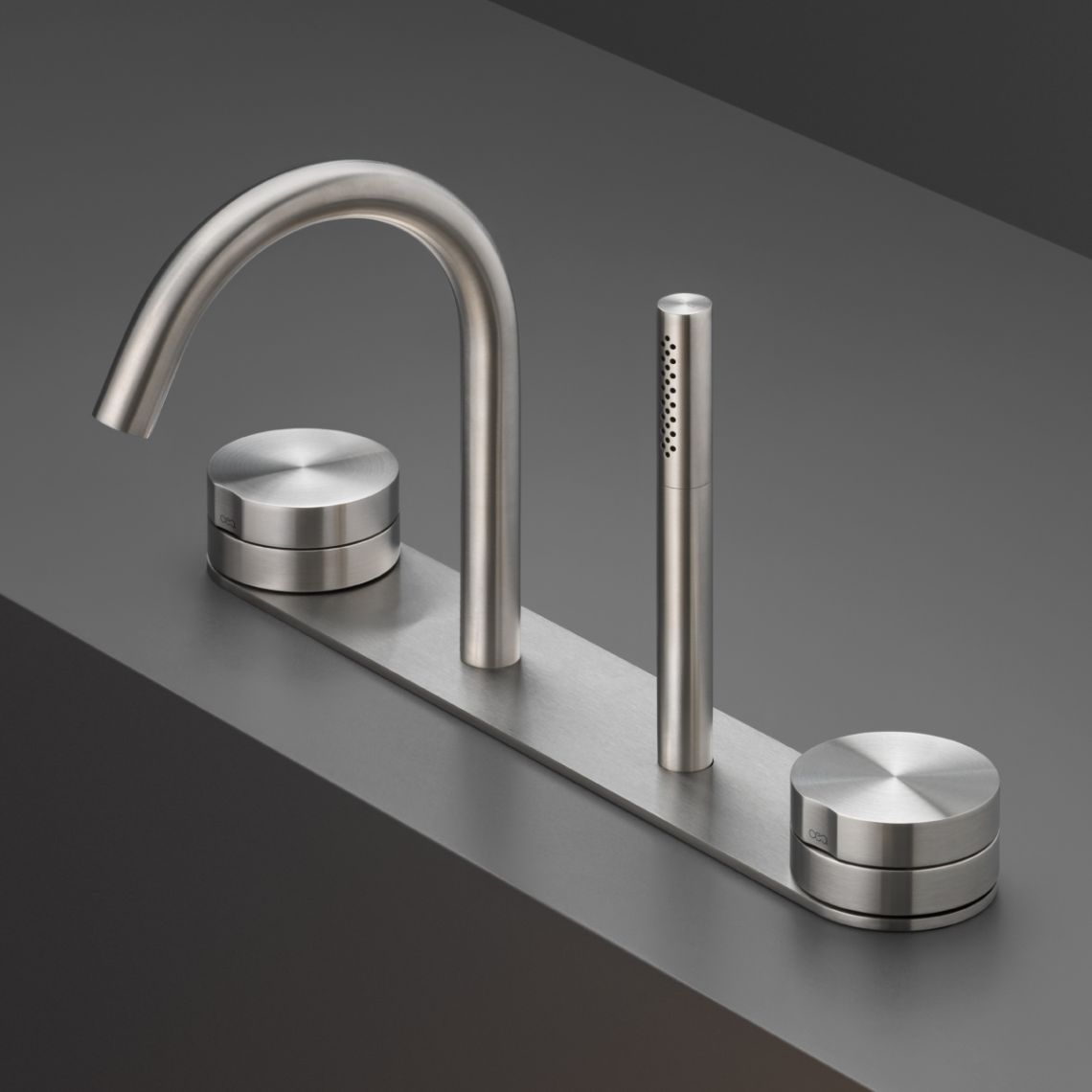 Змішувач на борт ванни CeaDesign Giotto Plus з виливом та висувним ручним душем, сатин (GIO96S)