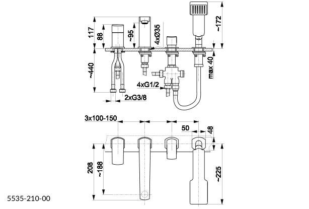 Змішувач з монтажем на борт ванни KFA ARMATURA MOKAIT 5535-210-00