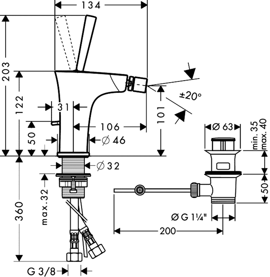 Змішувач PuraVida для біде, хром/білий (15270400)