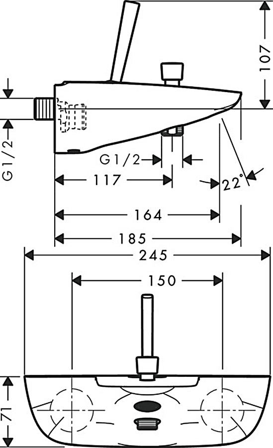 Витрати води на ванну: 19 л/хв. Витрати води на ручний душ: 23 л/хв.