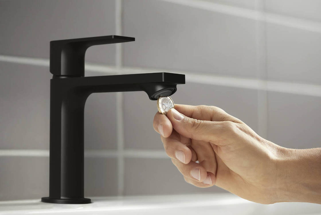 EasyMaintenance. Обслуговування за секунду. Швидко перевірити, змінити або видалити накип із аератора Вашого змішувача - просто вставте монету в клапан відкриття для огляду або регулювання.