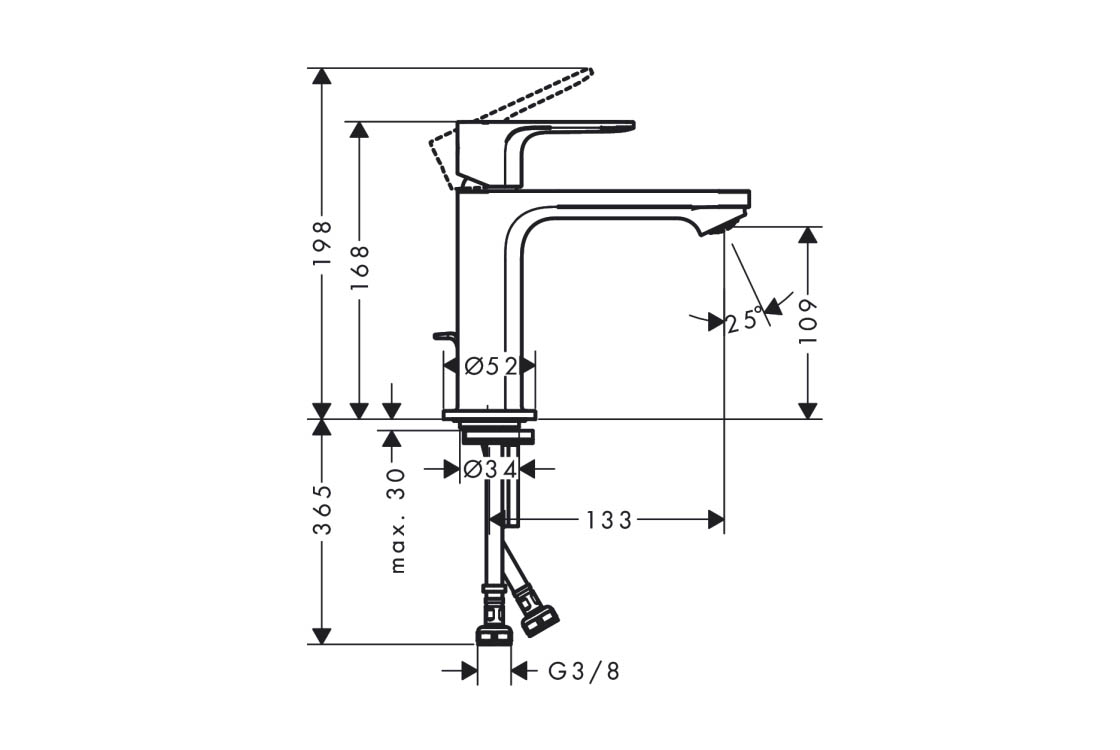 - вид з'єднання: з'єднувальні шланги G ⅜