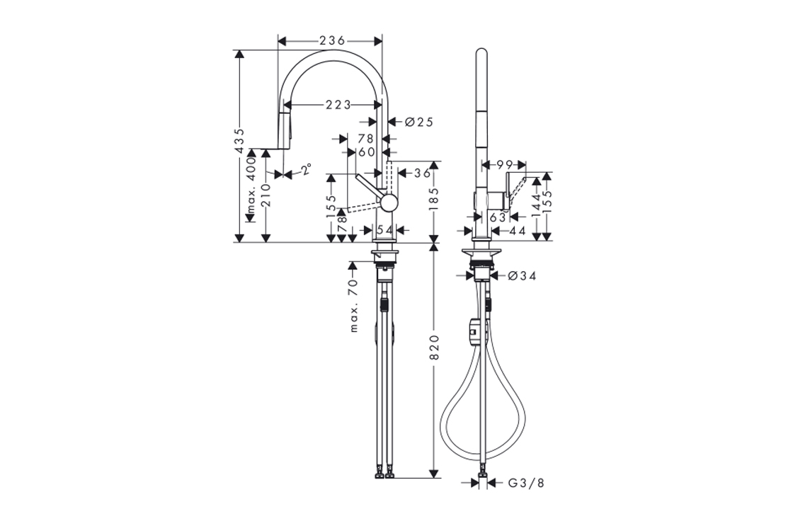 Змішувач Talis M54 210 2jet кухонний ECO з витяжним виливом, Matt Black (72842670)