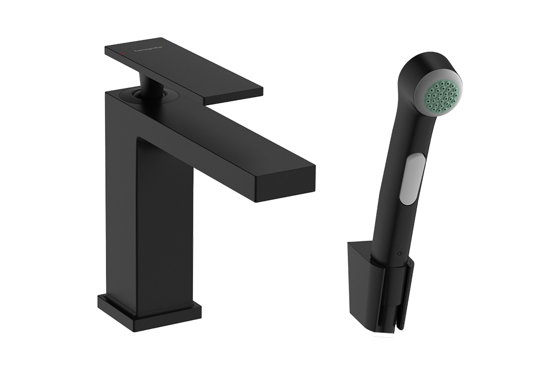 Змішувач Tecturis E 110 для умивальника з гігієнічною лійкою, Matt Black (73210670)