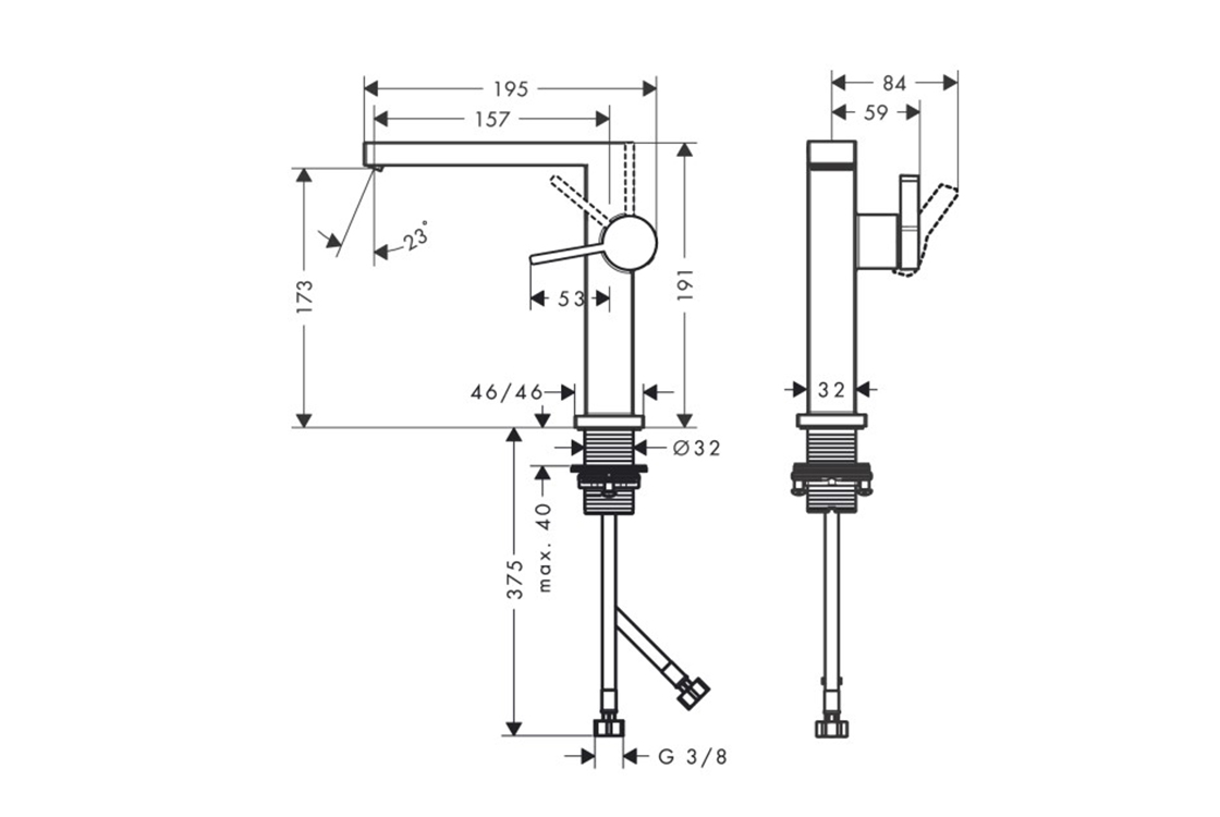 Технологія Coolstart: холодна вода відкривається в центральному положенні.ComfortZone 150,виступ: 157 мм,висота носика: 173 мм,тип розпилення: WaterfallStream,керамічний картридж,підходить для безперервних проточних водонагрівачів,тип з'єднання: G ⅜,приєднувальний розмір: DN15.