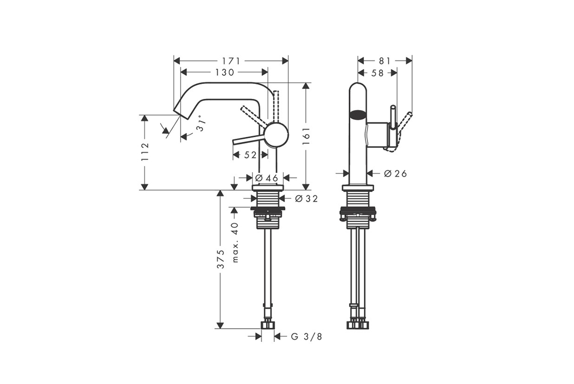 складається з: одноважільного змішувача для умивальника, зливного комплекту Push-Open G 1¼,ComfortZone 110,виступ: 130 мм,висота носика: 112 мм,тип спрею: звичайний спрей,керамічний картридж,підходить для безперервних проточних водонагрівачів,тип з'єднання: з'єднання G ⅜,приєднувальний розмір: DN15,холодна вода вмикається на середньому положенні важеля.