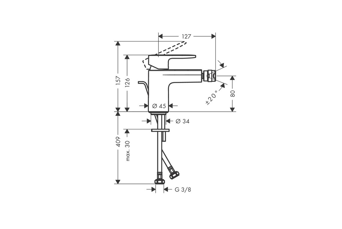 складається з: одноважільного змішувача для біде, зливного комплекту,виступ 127 мм,висота носика: 80 мм,аератор з кульковим шарніром,тип спрею: звичайний спрей,максимальна витрата при 3 барах: 5 л/хв,керамічний картридж,підходить для проточних водонагрівачів,висувний набір відходів G 1¼,набір відходів матеріалу: метал,тип з'єднання: з'єднання G ⅜,приєднувальний розмір: DN15.